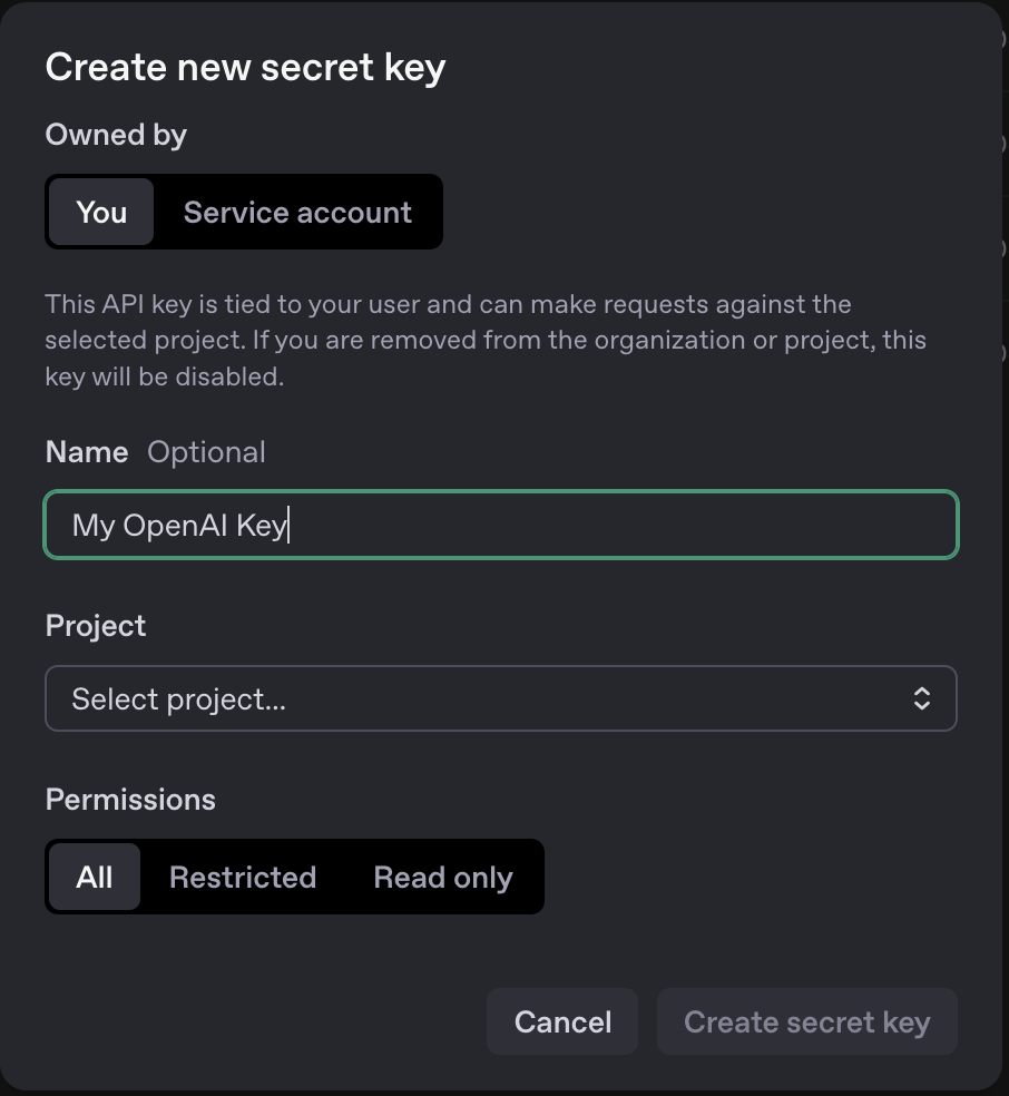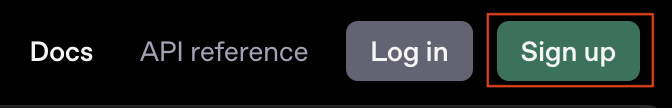 If you already have your OpenAI API key, you can skip this section. Otherwise, let’s walk through the steps to get your OpenAI API key. Go to the OpenAI Console where on the top right corner, you will see a button to sign up or sign in. If you don’t have an account, click on the Sign Up button and follow the instructions to create an account.